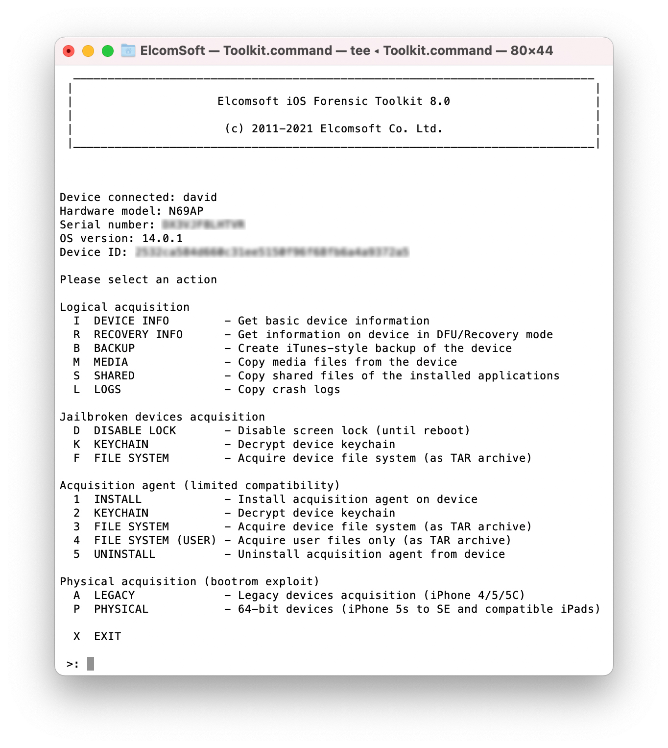 Elcomsoft iOS Forensic Toolkit Boot-Prozess