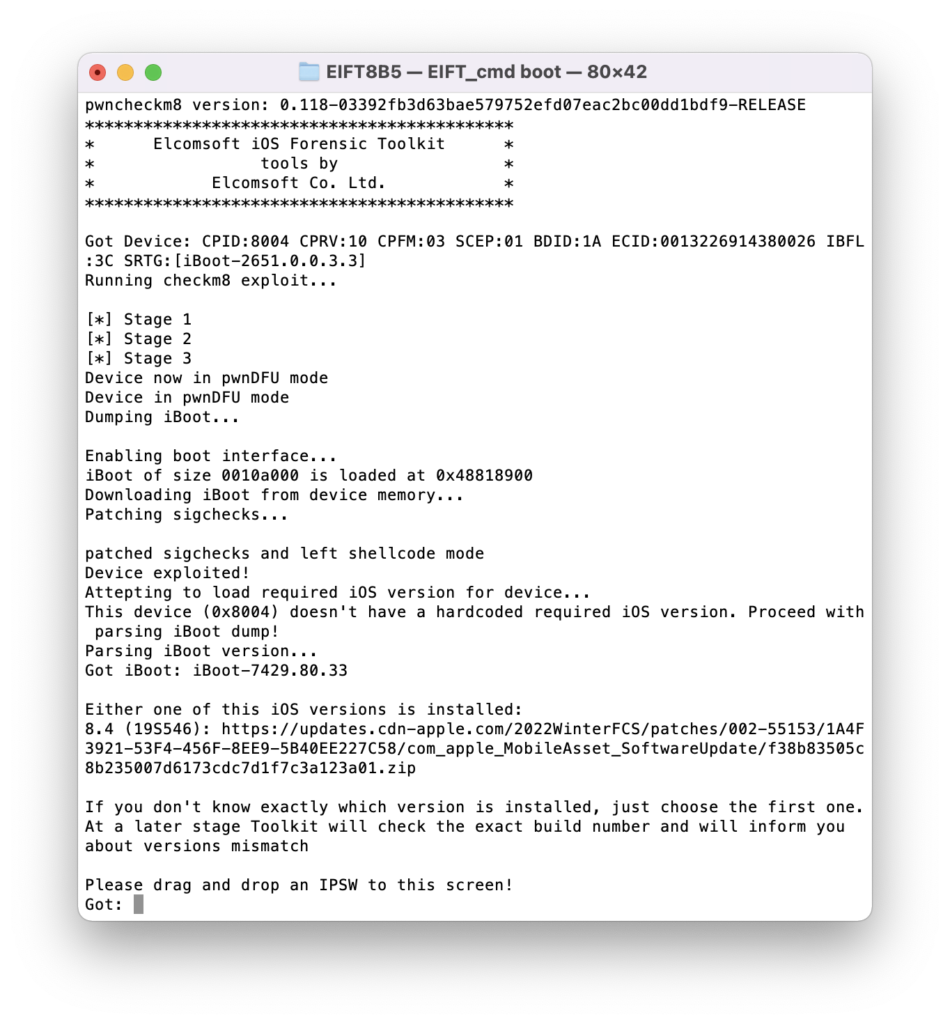 Screenshot iOS Forensic Toolkit EIFT 8 beta1 Booting