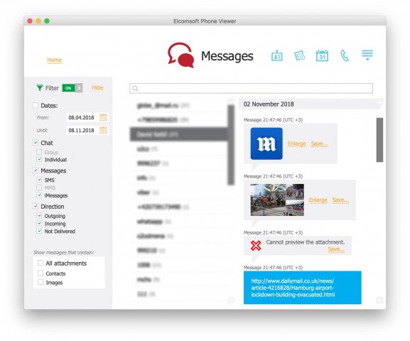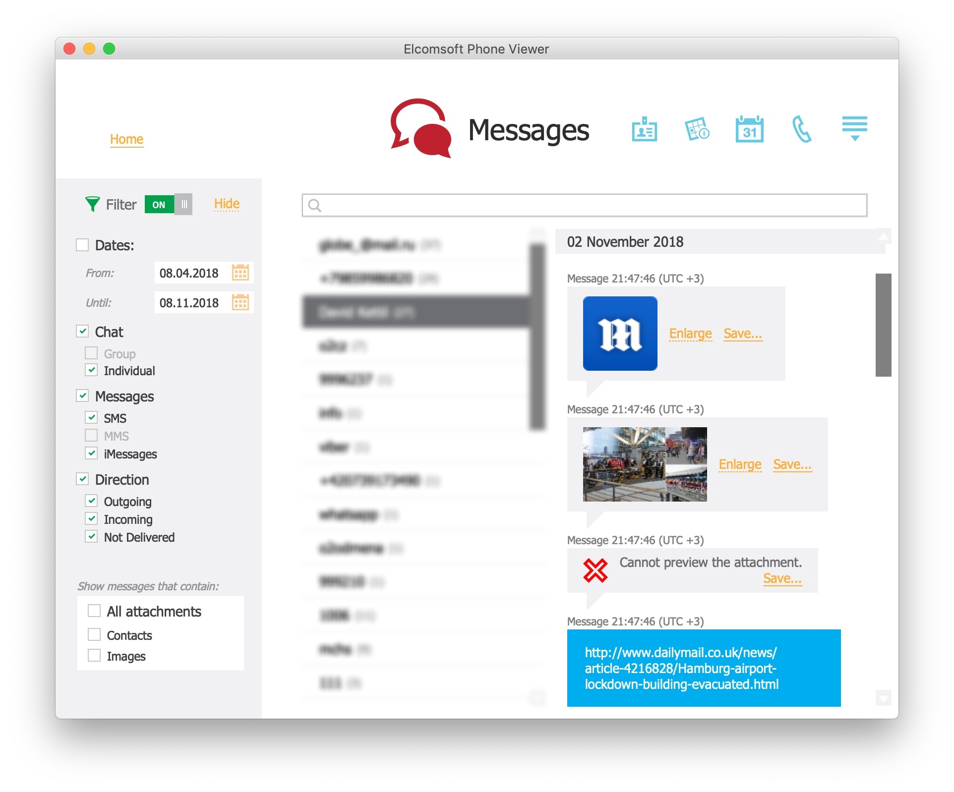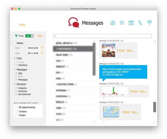 Elcomsoft Phone Viewer iMesssage Extraktion Screenshot 1